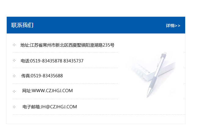 地址:常州市新北區友邦商務大廈1幢16、17層  電話:0519-85101652  傳真:0519-85112595  郵編:213022  網址:www.cz-jiayue_cn.tchjj.com  郵箱:xiajifengaa@163.com